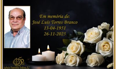 Faleceu José Luís Torres Branco, de 74 anos, eletricista, residente em Valdeirigo. Velório: Quarta-feira, 26 de novembro, pelas 17h00, na Capela Funerária da Igreja Nova. Funeral:...