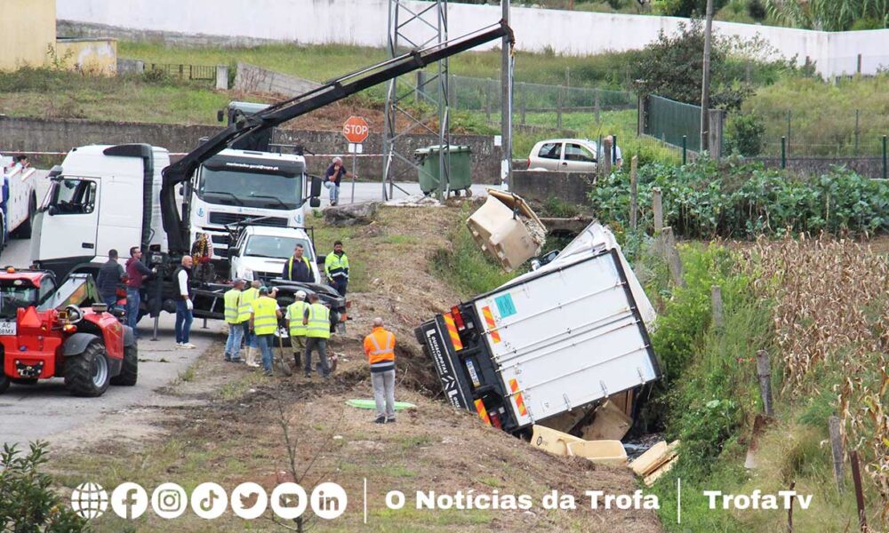 Um camião, carregado com toneladas de peixe, tombou numa ribeira, na Rua dos Poços, no limite entre S. Romão do Coronado e Covelas, na tarde desta quinta-feira. Leia a notícia no link