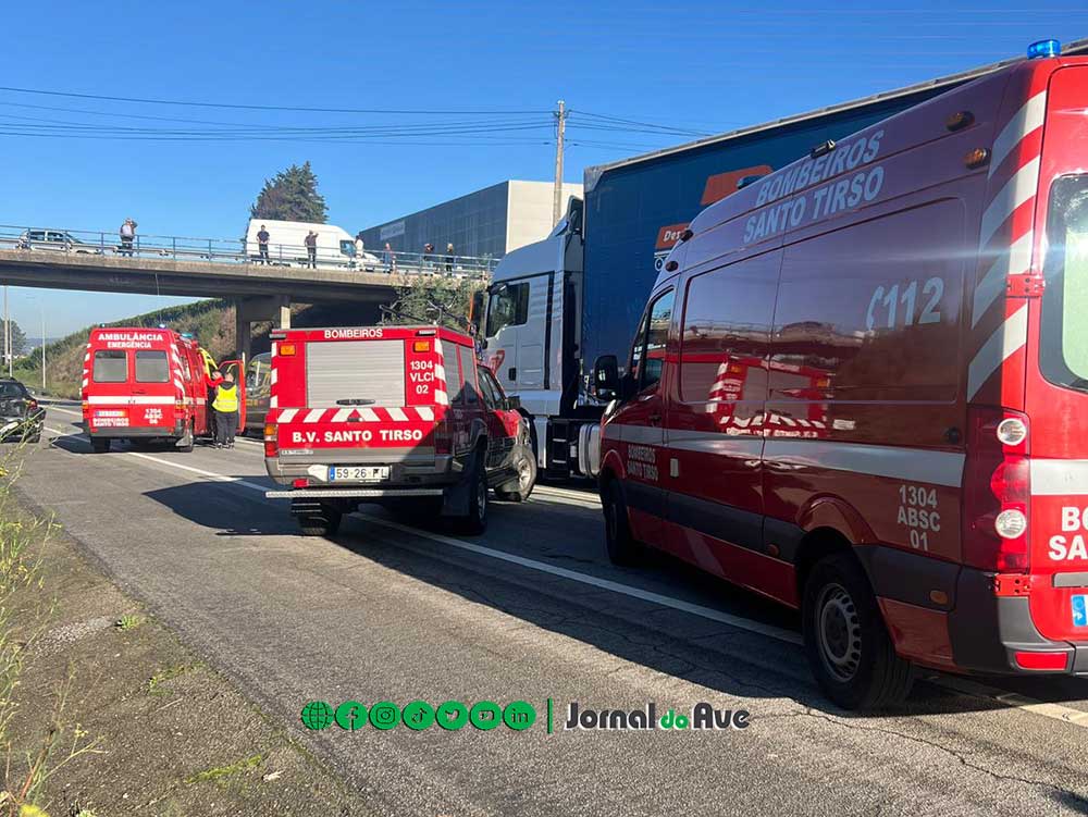 A colisão, que envolveu um veículo pesado e três ligeiros, deu-se cerca das 08h50, no sentido Trofa-Santo Tirso.