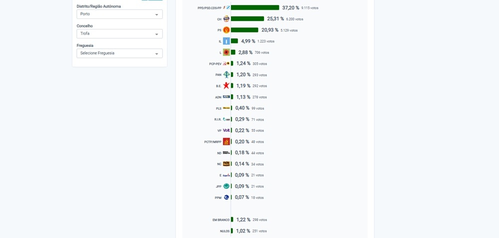 Coligação PPD/PSD.CDS-PP vence Legislativas na Trofa; Chega em 2.º
