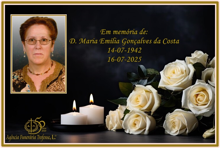 Faleceu Maria Emília Gonçalves da Costa, com 83 anos de idade.
