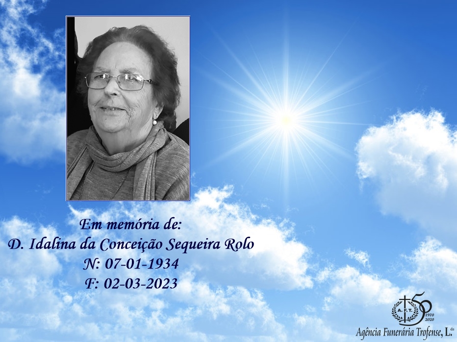 Faleceu Idalina da Conceição Sequeira Rolo, com 89 anos, viúva de António Rolo, mãe de Paula e Mário Rolo.