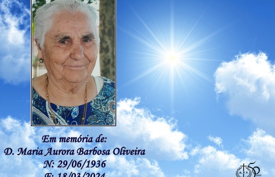 Faleceu Maria Aurora Barbosa Oliveira, com 87 anos. (Aurora dos Pateiros. Esposa do Zé da Aurora – residente em Bairros). Dados das cerimónias funebres: Velório: Funeral: Cemitério: Missa de 7º dia: