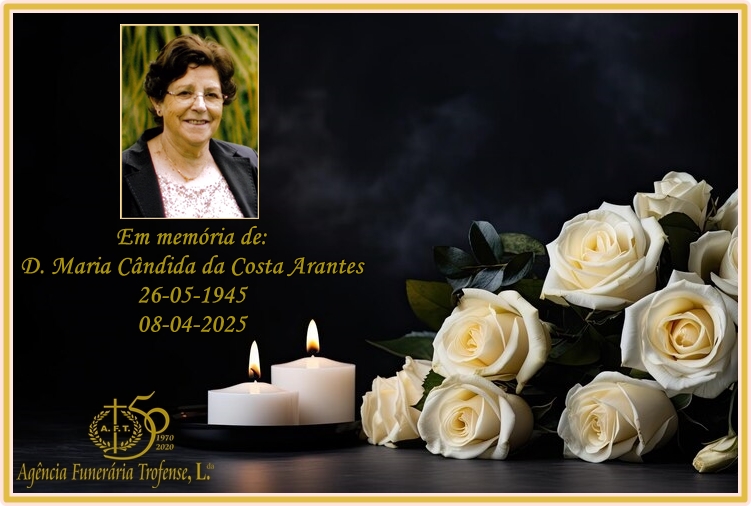 Faleceu Maria Cândida da Costa Arantes, com 79 anos de idade, esposa do Sr. Francisco Luís Alves Diniz.