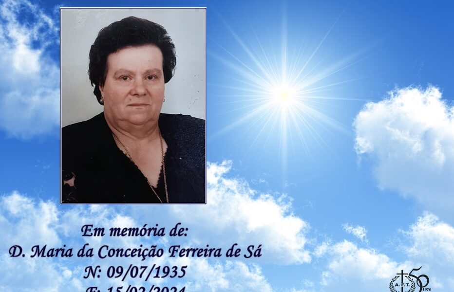 Faleceu Maria da Conceição Ferreira de Sá, com 88 anos, viúva de Avelino Moreira de Azevedo – Restaurante Flor do Ave. Velório: Funeral: Cemitério: Missa de 7º dia: