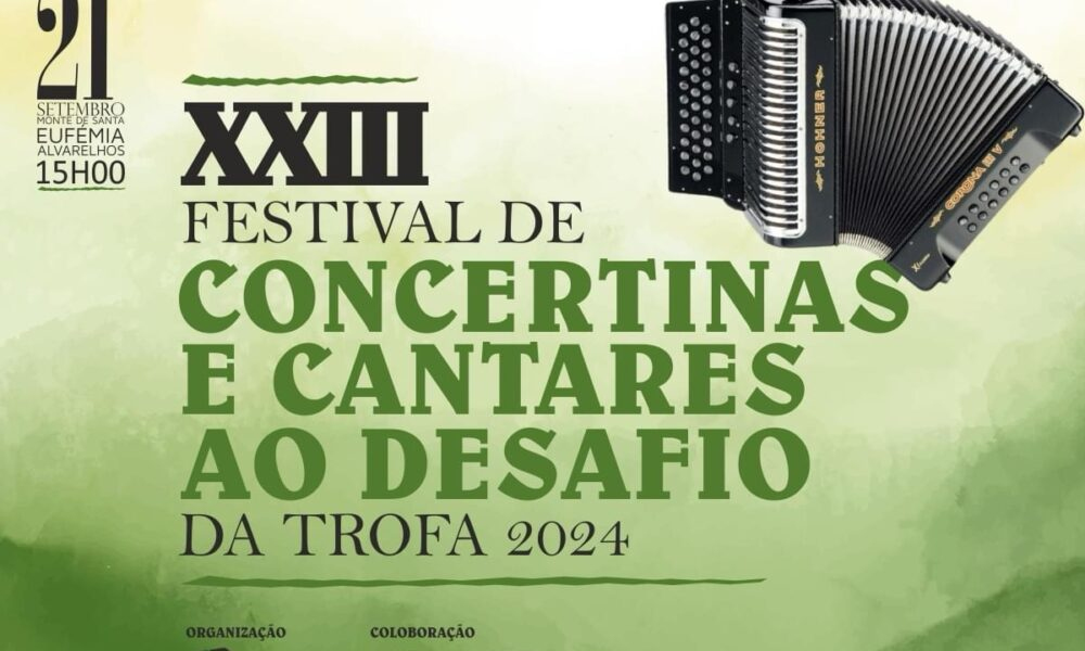 O Festival de Concertinas e Cantares ao Desafio da Trofa está de regresso ao Monte de Santa Eufémia a 21 de setembro, a partir das 15h00.