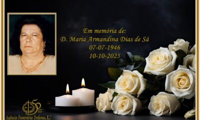 Faleceu com 43 anos, residente na Rua de Sá – Alvarelhos, Trofa. Velório: Quarta-feira, dia 10 de setembro, pelas 15h30, na Capela Mortuária de Alvarelhos. Funeral:...