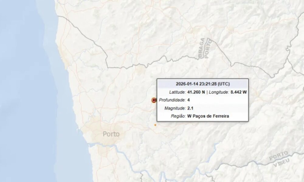 Um sismo foi registado na noite de quarta-feira, pelas 23h20, com epicentro localizado a cerca de seis quilómetros a oeste de Paços de Ferreira, segundo informações do Instituto Português do Mar e da Atmosfera (IPMA).